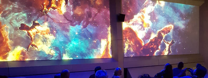 The universe cruise consisted of 5 large projected windows looking out accross the universe as the viewer hurtles towards its final destination, Mars. Each room had its own control station, and the actors in each room were able to trigger, reset or trigger an emergency room should it be needed.