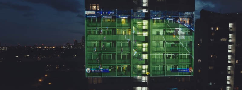 AV3 was asked to provide mapped projections in 2 scenes for the advert. The first scene was covering victorian railway arches in mapped projections, and then we were asked to project on a south London Housing Estate.